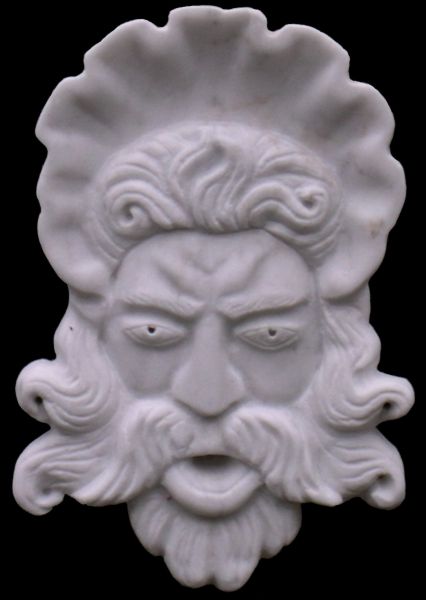 Artist's Collection This mid relief mask harkens back to carvings on Greek temple friezes. The carving protects the koi pond in my sculpture garden/studio. White Danby Marble